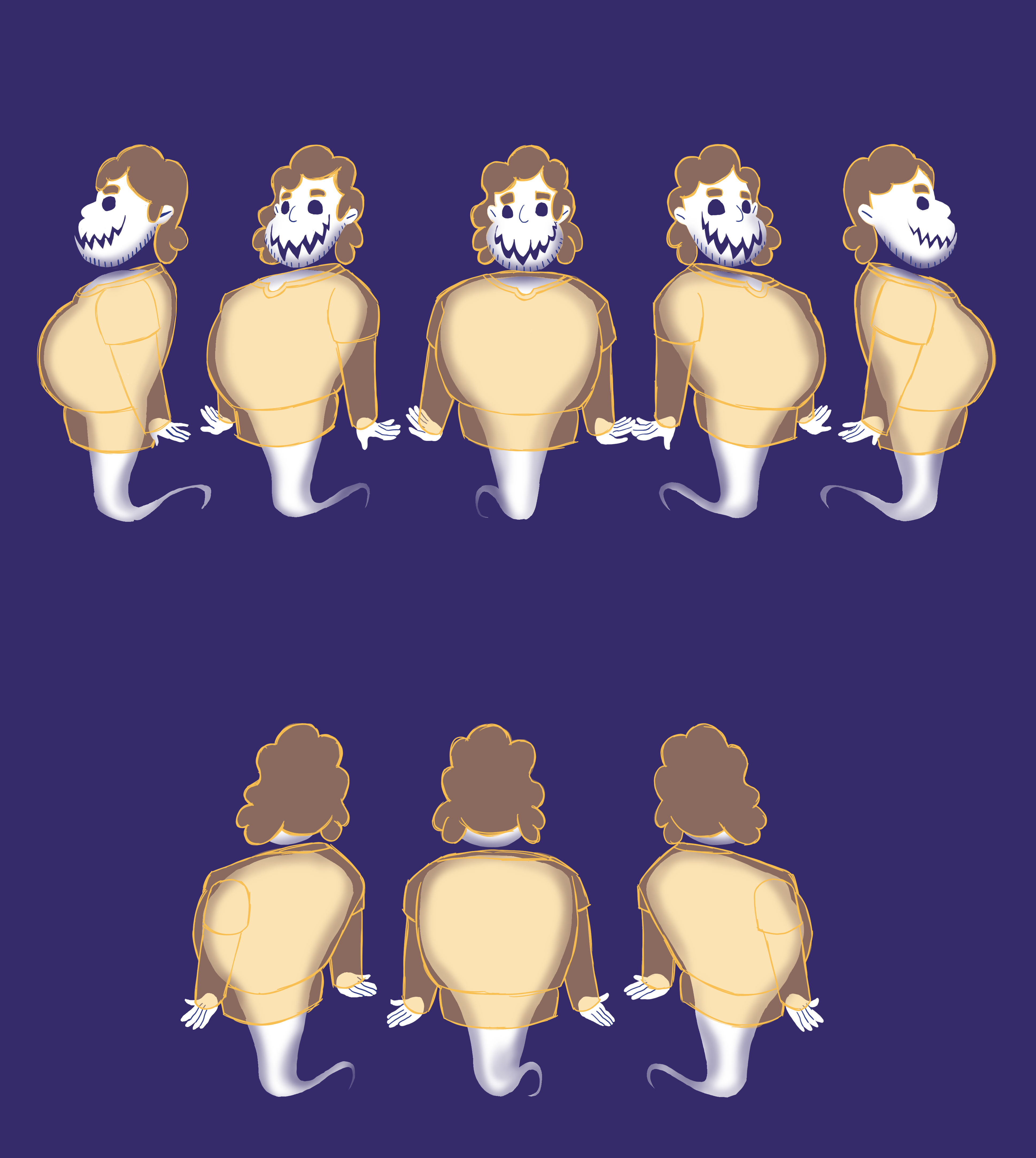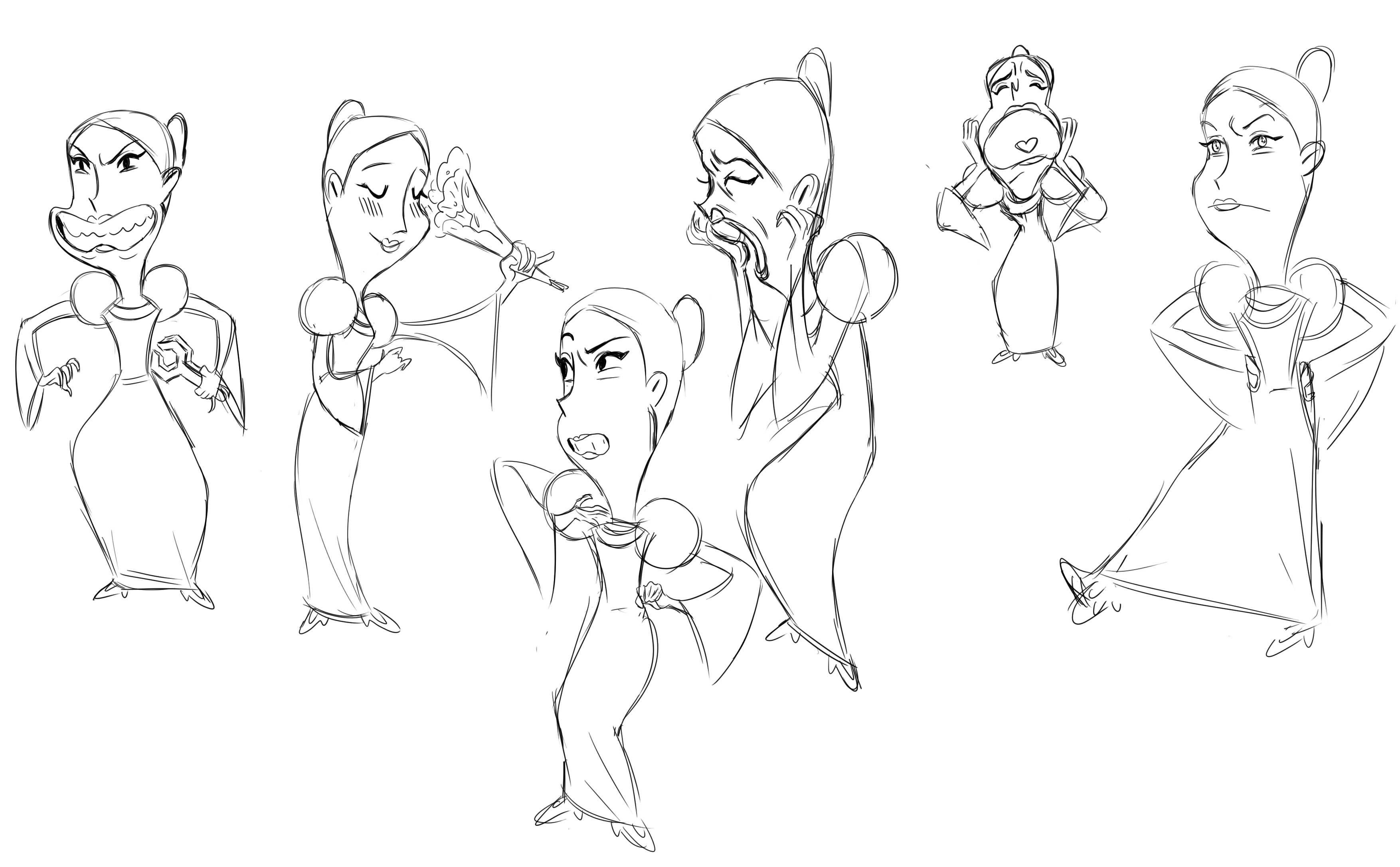 In the process, I have a new understanding about character-designer, which is not only a simple painting skills of the job, but also need you to be better able to perform the role, show the role. For example, you need to use a few simple actions to express the character of the character, even the unimportant characters have to interpret all the important information in the design of the action and expression. You need to have a clear understanding of how your characters move in different situations, how the light is, and how the clothes on the front and back are different. And most importantly, how to show your design clearly and clearly to others, whether you need a 360 °rotation diagram to guide how animators characters are drawn in animation, what is my own design philosophy?